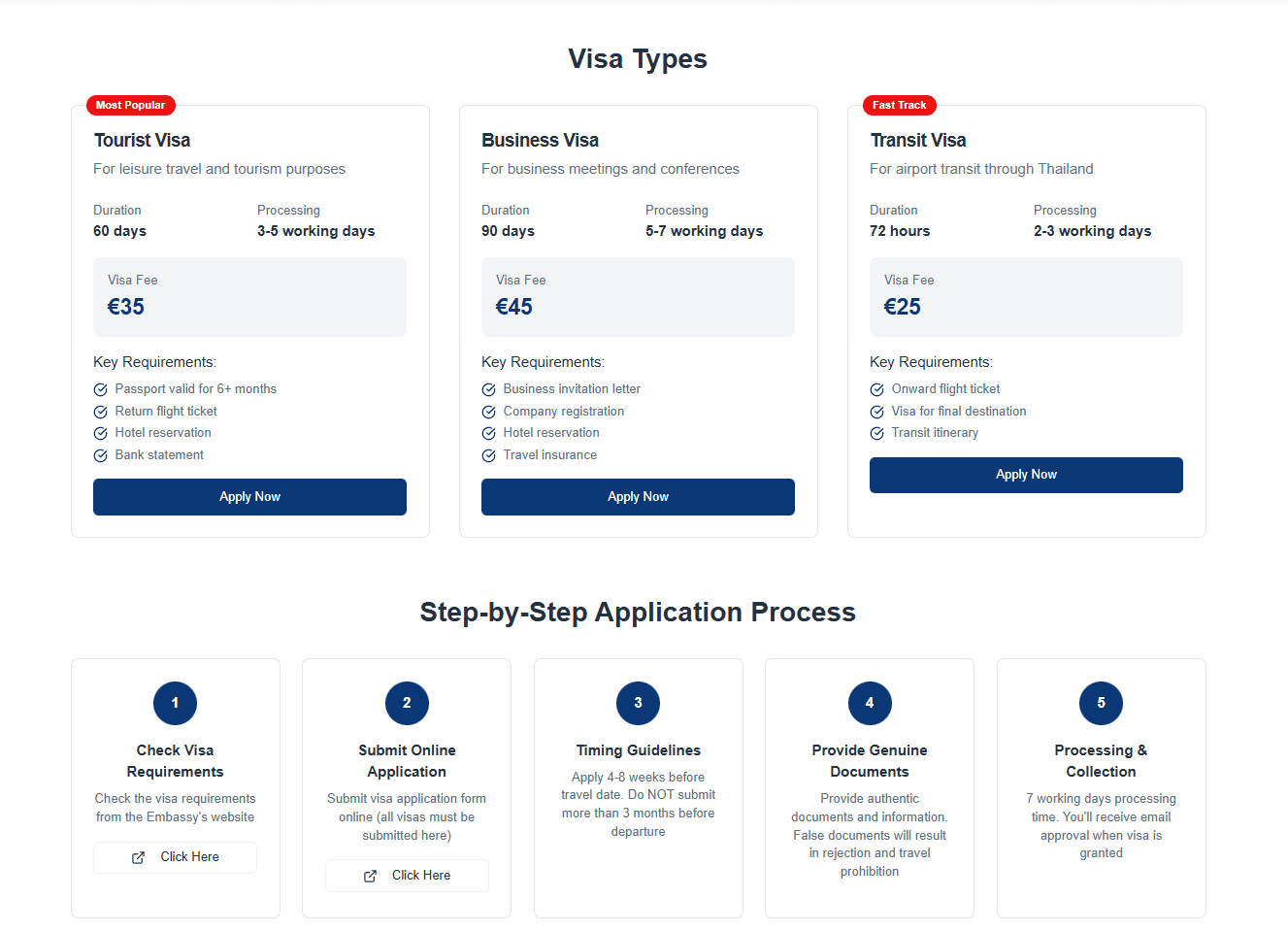 As a frequent user of the embassy website, I often struggle to find the information I need. This repeating frustration inspired me to redesign the site to improve usability, navigation, and overall user experience.